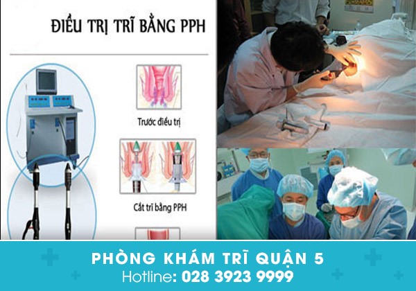 Phương pháp PPH (điều trị trĩ nội): Là sử dụng máy kẹp PPH để kéo các búi trĩ ra khỏi đường lược hậu môn một cách an toàn, sau đó thực hiện cắt và khâu búi trĩ tự động, cắt nguồn cung cấp máu đến các búi trĩ để các búi trĩ tự rụng.